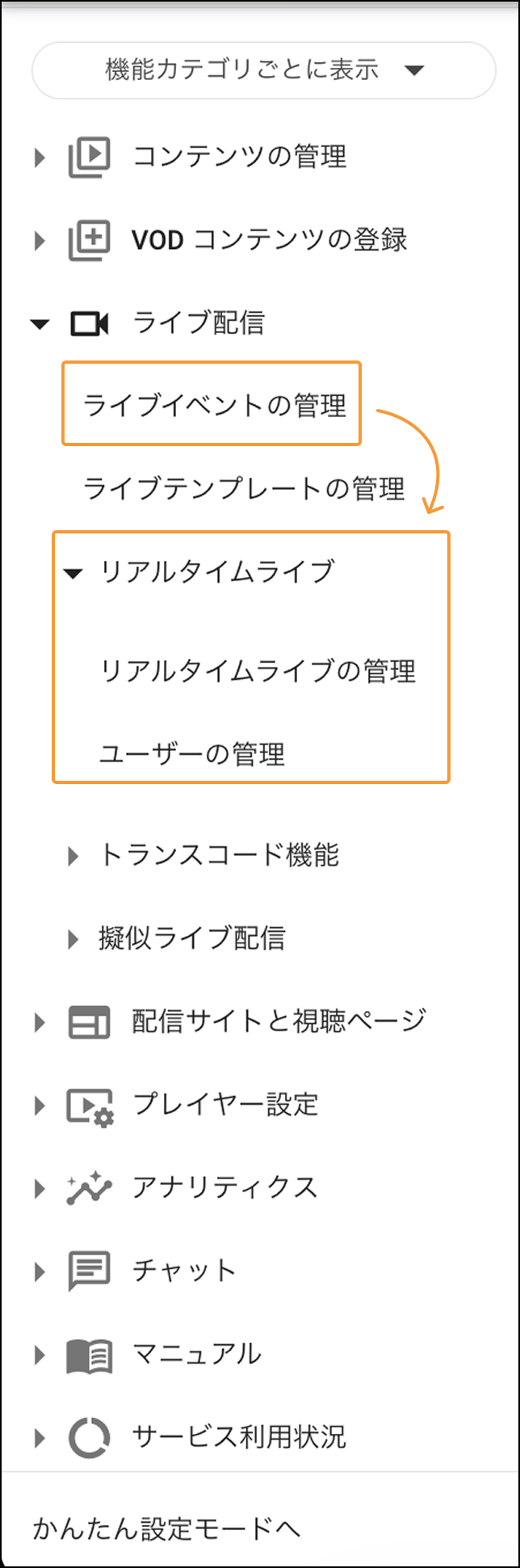リアルタイムライブに参加するユーザーの作成、編集、削除、およびグループの管理ができます。