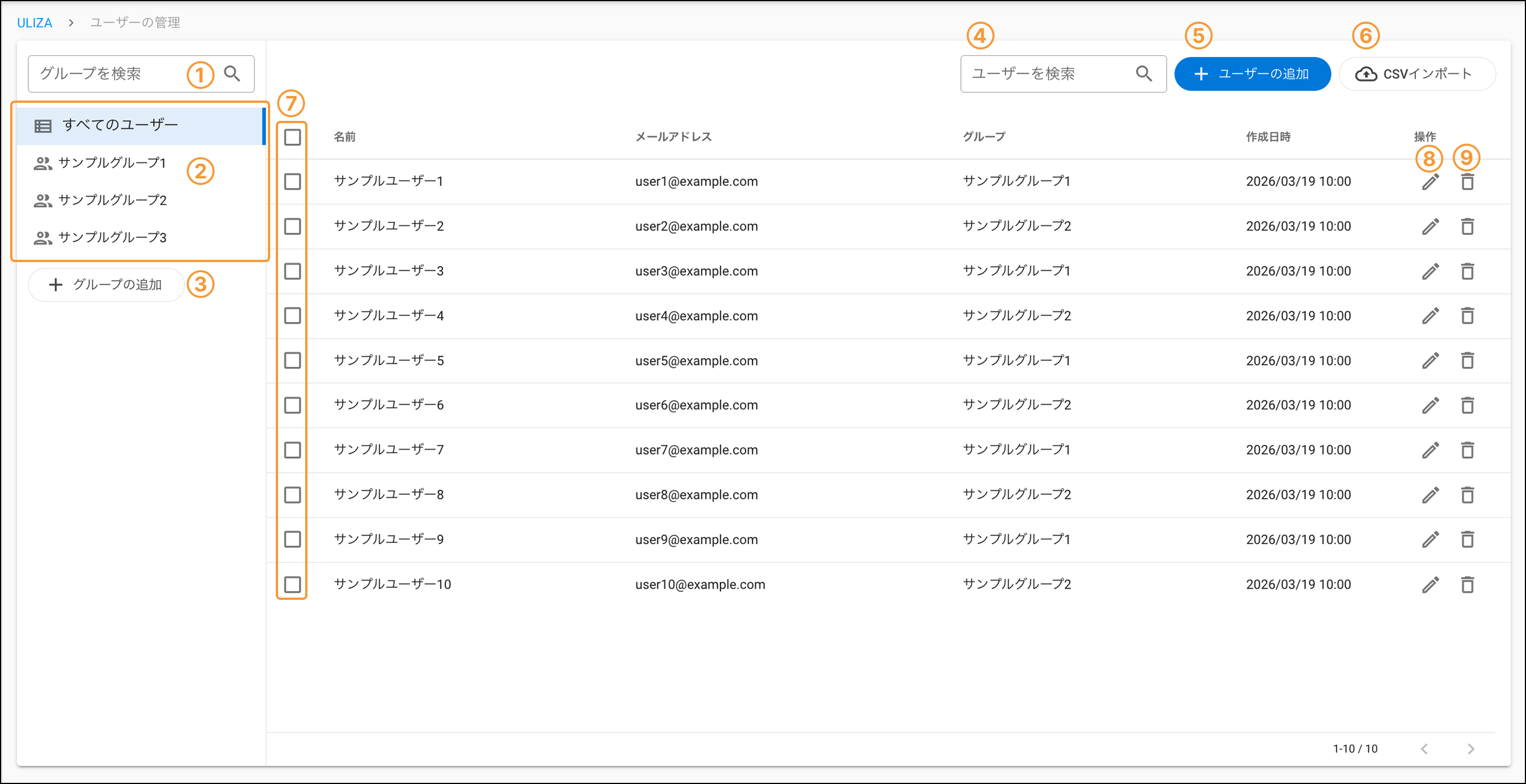グループを選択すると、画面右側のユーザー一覧がそのグループに所属するユーザーのみに絞り込まれます。