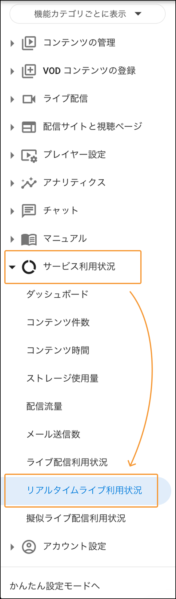 リアルタイムライブ配信利用状況画面の構成は以下の通りです。