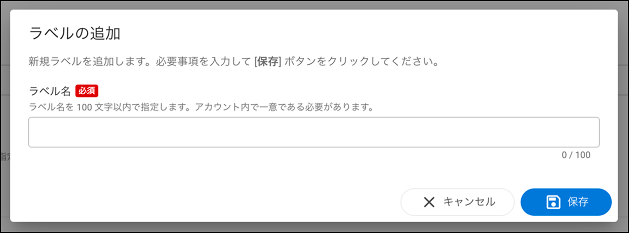 - ⑥ ラベル 「ラベルの追加」ボタンをクリックするとダイアログが表示され、新規作成できます。