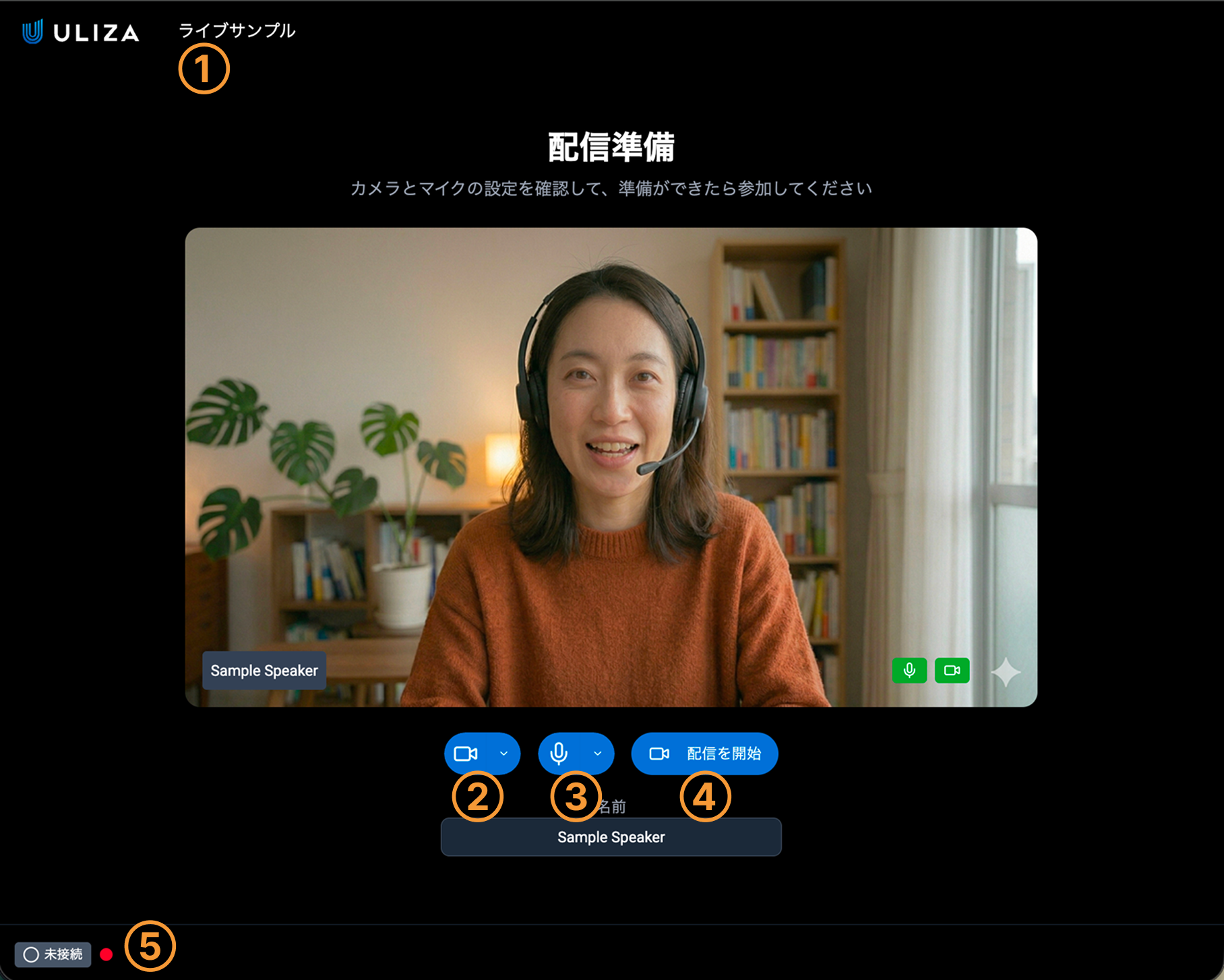 - ⑤ 役割(配信者・視聴者)選択メニュー