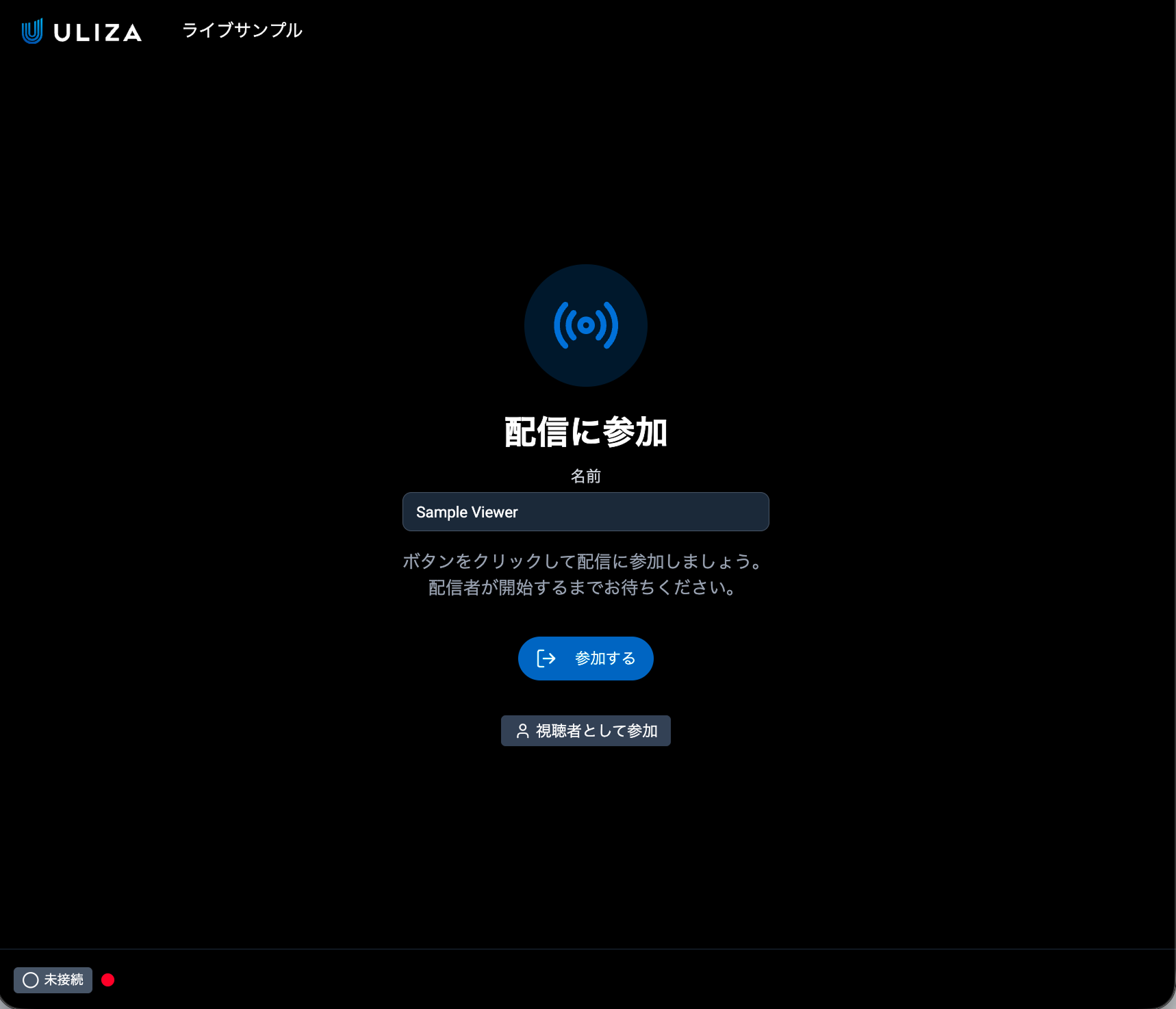 ログイン後、配信画面のURLにアクセスすると以下の画面が表示されます。