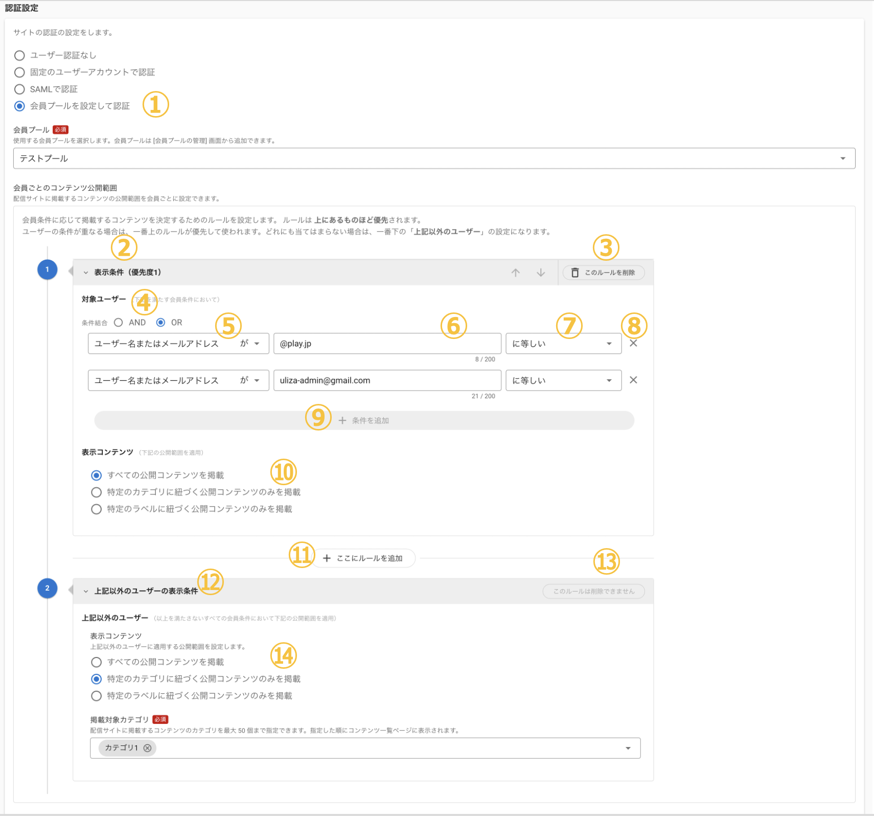 会員プールによるユーザー認証を設定できます。